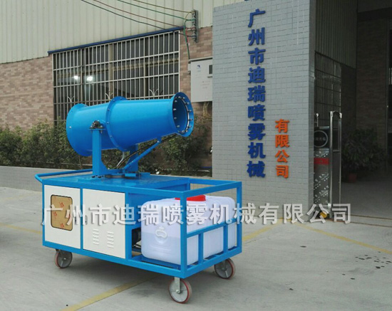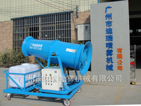 高壓噴霧風炮的工作原理將自來水經(jīng)過專業(yè)凈化處理后運用高壓設備在高壓單元內(nèi)部形成強大的工作壓力,通過專用的噴嘴形成50~150微米左右的水霧微粒, 微小的霧粒大量聚集并漂浮于空氣中形成白色云霧狀的霧氣效果不產(chǎn)生水滴,其顆粒及其細小表面張力基本上為零,能迅速吸附空氣中的灰塵顆粒形成有效的控塵, 且通過高速風機加速后大面積擴撒,對大型開闊范圍的控塵降塵相當有效;若為噴霧除臭藥液可使藥物分子隨霧粒的擴散充分與空氣中的臭氣分子接觸并發(fā)生反應, 有效的清除臭氣廢氣。噴霧風炮還能夠迅速吸收空氣中的熱量蒸發(fā),快速有效吸熱降低周圍的溫度并增加空氣濕潤度。